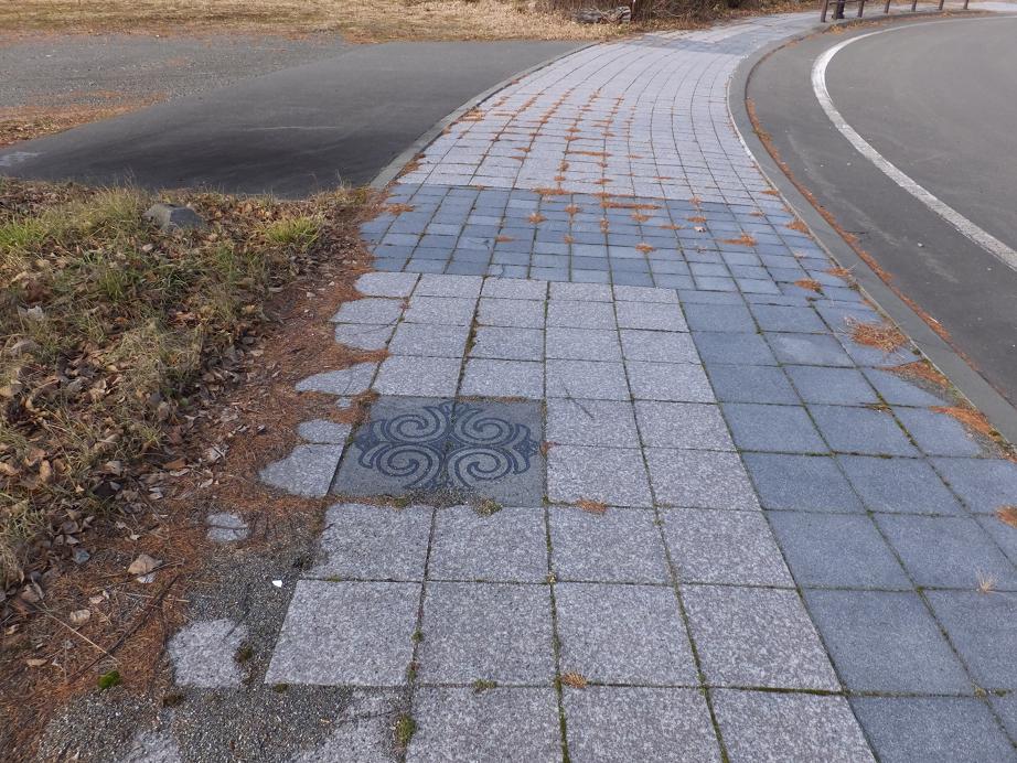 行く時は気付かなかった歩道に描かれたアイヌ文様。