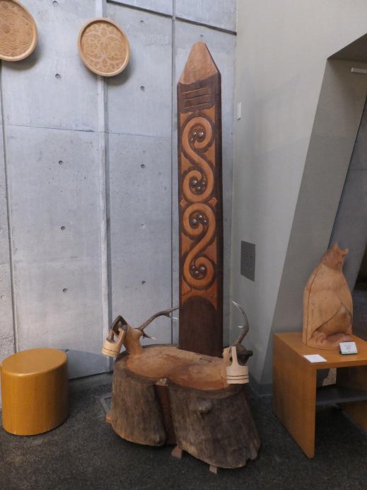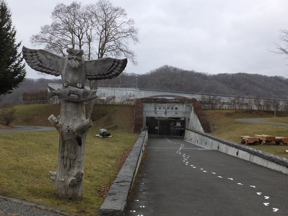 入口はフクロウがお出迎え。書き忘れましたがフクロウはアイヌの守護神です。