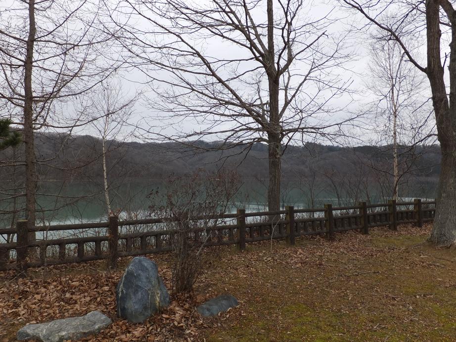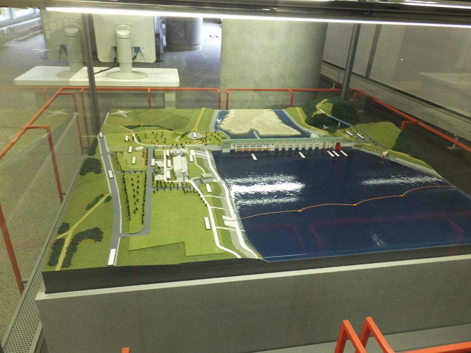 展示物を見ながらスロープをあがると二風谷湖を見渡せるテラスに出ます。