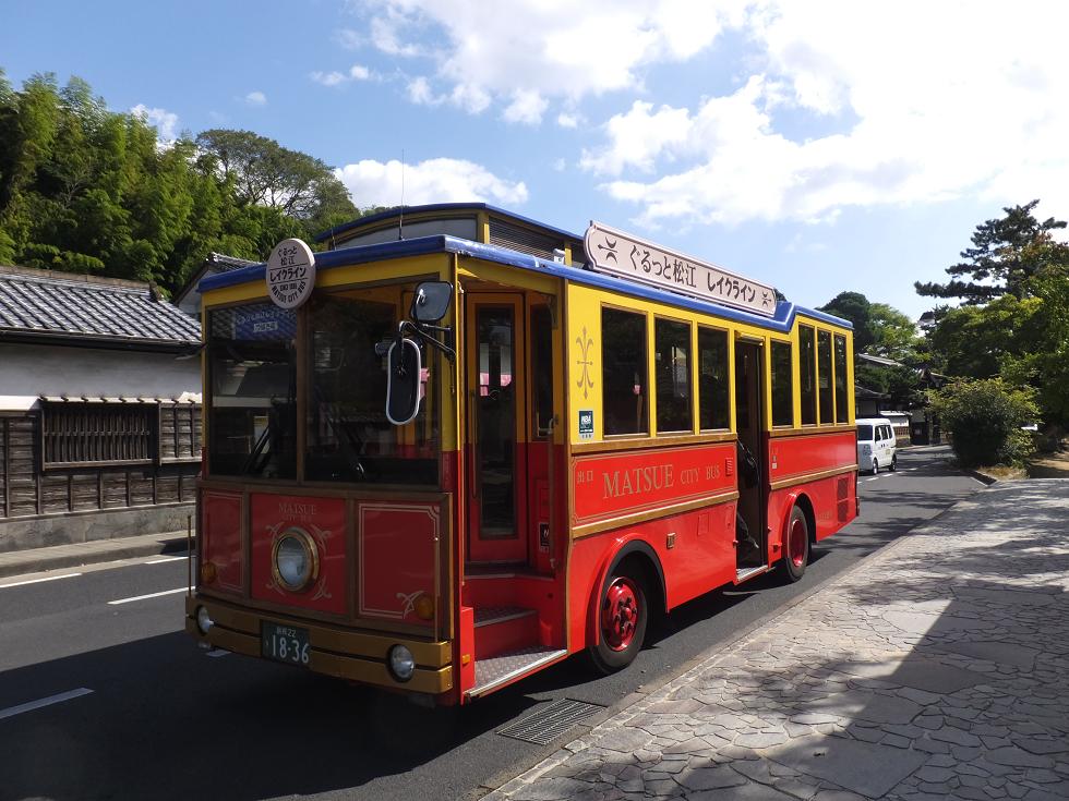 まずホテルに荷物を預けて、前回少ししか乗れなかった”ぐるっと松江レイクライン”の一日乗車券でスタートです。
