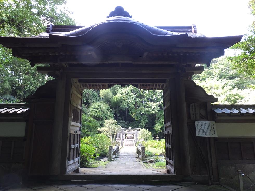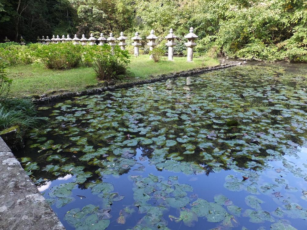 門をくぐり橋を渡って墓所に行きます。池に浮かんだ水草がきれいでした。