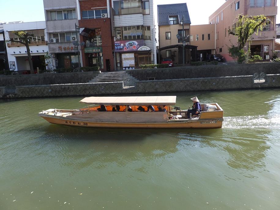 バスを待ってたら堀川めぐりの船が通りました。船頭さんが歌ってました。