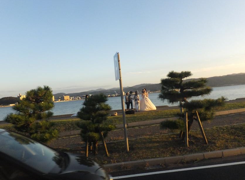 ・・・と、湖沿いに花嫁さん発見!!きれい。記念撮影でしょうか?