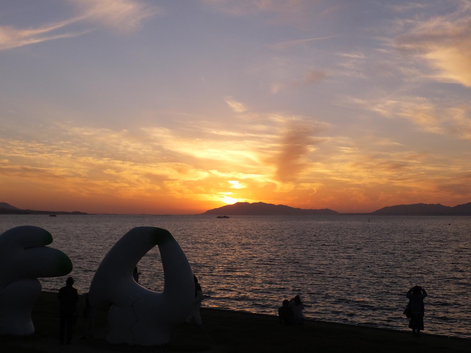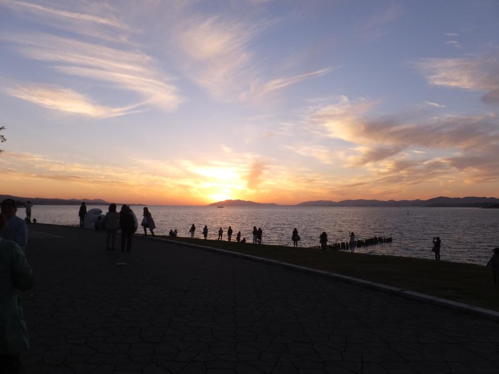 宍道湖に沈む夕日も観光名所です。前回は雨でしたがそれでもきれいだったので今回は晴天の夕焼けを期待できます。