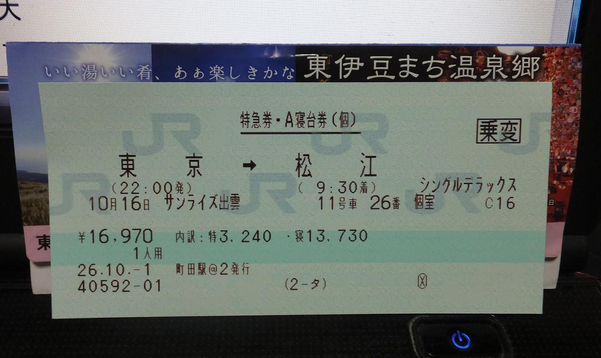 払い戻さなくてよかった東京発下りのA寝台個室のチケット。(台風でバタバタ を参照)