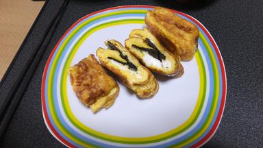 海苔をはさんだ卵焼きです。た~はこういう小技を利かせます。(私にはできません。)