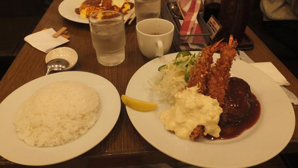 私は海老フライとハンバーグ定食