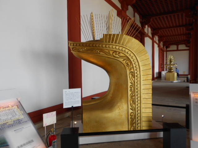 屋根に飾られていたとされる鴟尾(しび)です。屋根から雨水の浸入を防ぐもので、建物の格式を表す物なんだそうです。