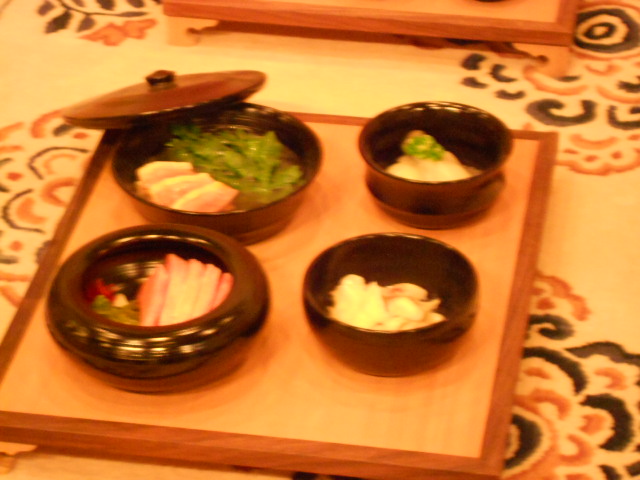 当時の貴族の食事を再現したもの。