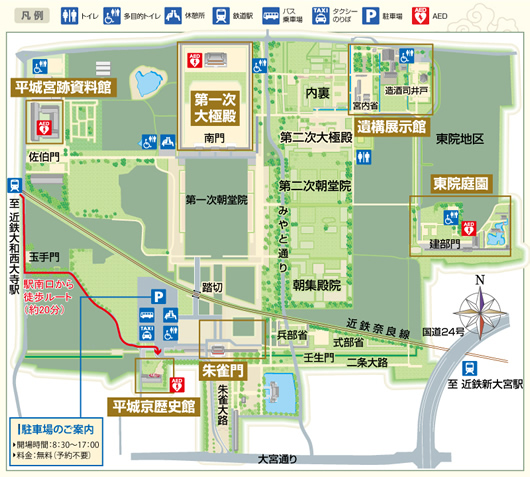 今回周った平城宮のMAPです。
