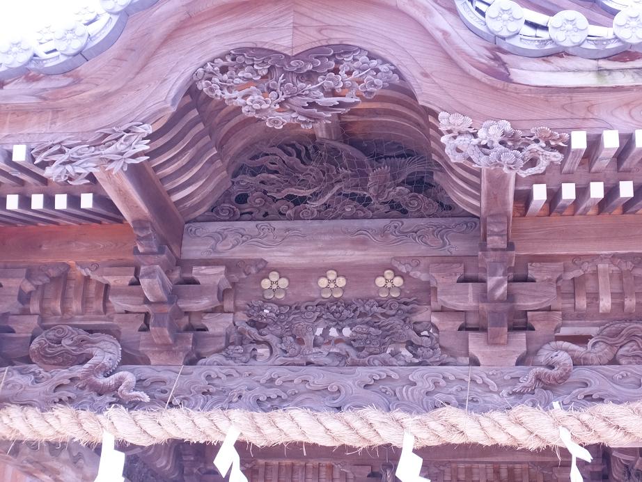 見事な彫刻。ズームアップでご覧下さい。よ~く見ると梅に松、龍に鳳凰?もいます。