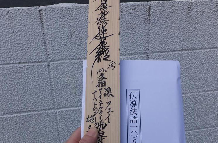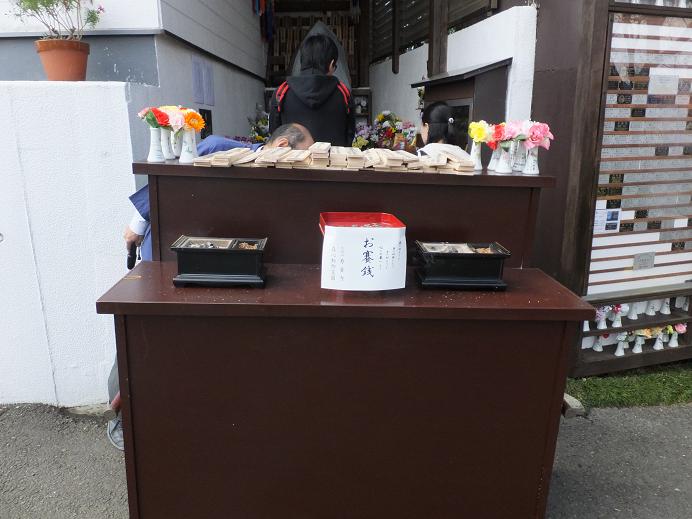 バスで30分くらいの郊外にあるお寺です。まず受付で塔婆を受け取りました。