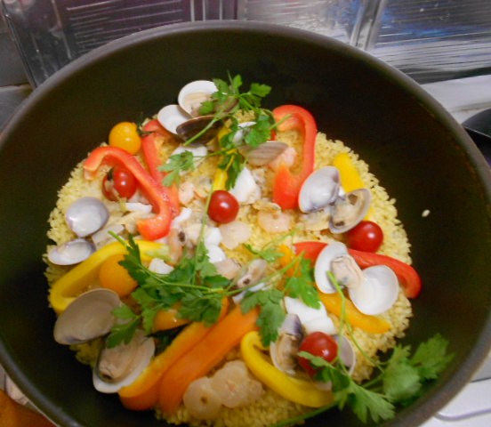 ちょっと手抜きですがシーフード・ミックスにハマグリを使いました。