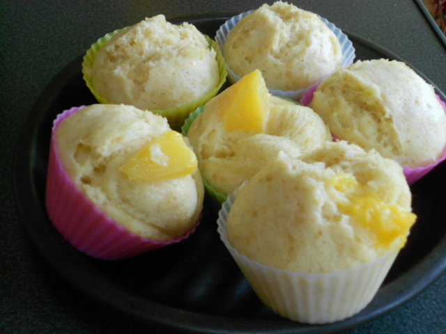 マンゴーと黄桃の蒸しパンです。