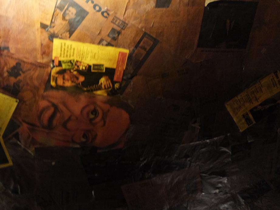 ふと見上げると天井には雑誌の切り抜きやらいっぱい。
