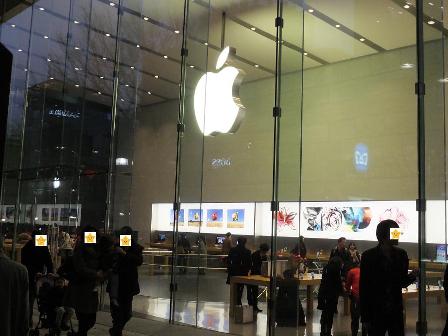 地下鉄の階段をを上がったらすぐ目の前にあるアップル・ストアのショールーム。