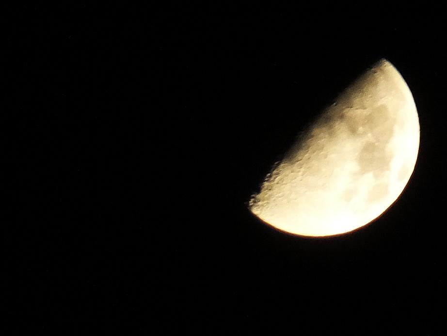今日はハーフムーンだけど満月よりも月の表面がキレイに撮れると聞いたので再挑戦してみました。