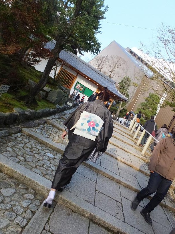 人混みで帯が汚れそうだったので人のいないとこで一瞬だけコートを脱ぎました。
