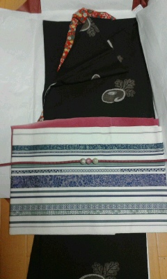 リサイクルで買った蕪の柄の泥大島に博多帯です。地空き(じあき)といって織るのに技術がいるのです。ぽっちゃりさんが着てたものらしく身幅はかなり広いのです。ま、小さいよりいいか。
