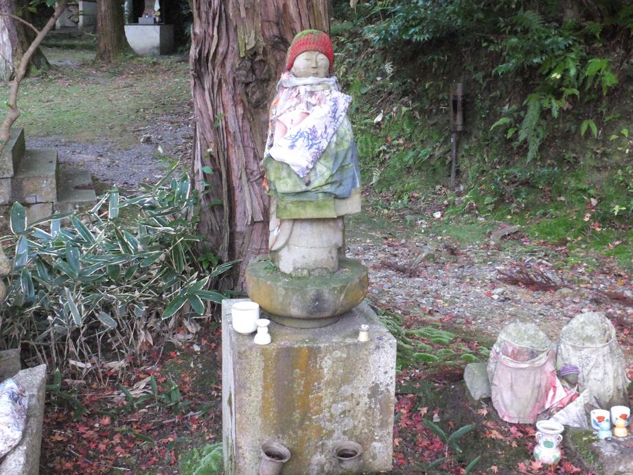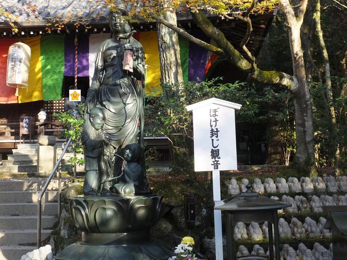 ぼけ封じ観音 足元におじいさんとおばあさんがすがっています。