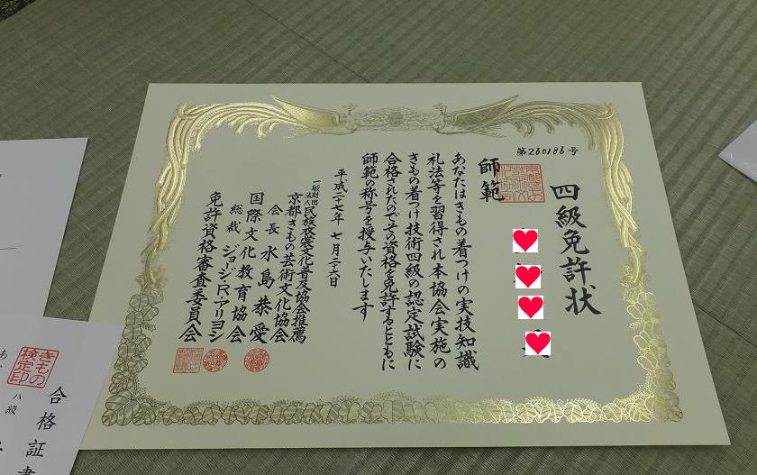 遅くなりましたが 着つけのお免状をもらいました。emoji